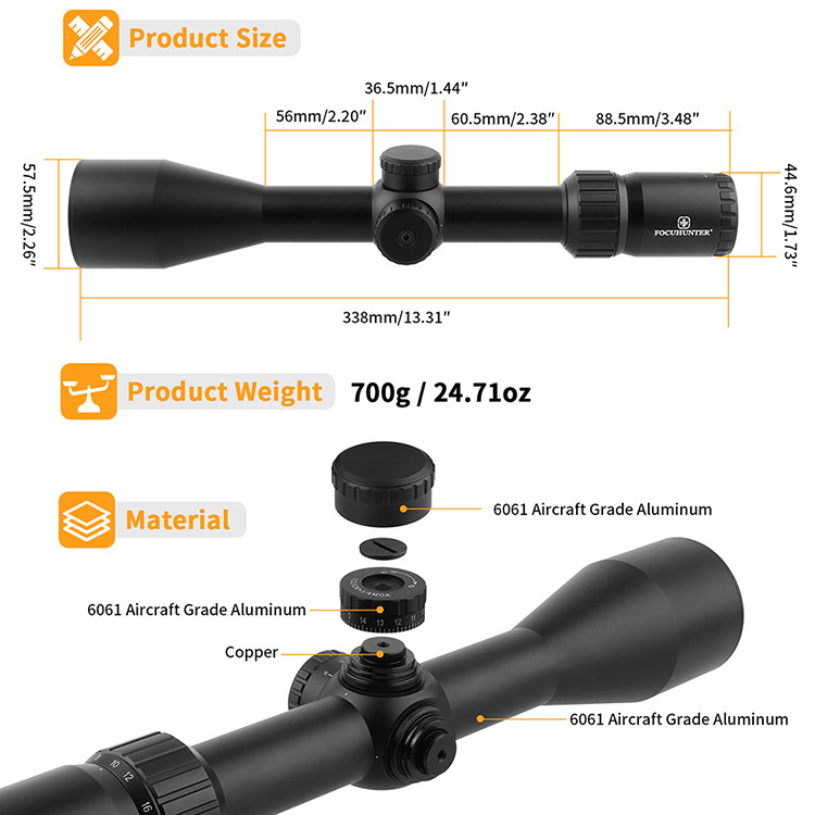 Focuhunter 30mm Tube 1/4MOA 3-18×50 SCOPE